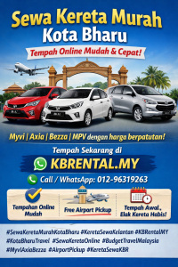 #Tags: #SewaKeretaMurahKotaBharu #KeretaSewaKelantan #KBRentalMY #KotaBharuTravel #SewaKeretaOnline #BudgetTravelMalaysia #KeretaSewaMurah #MyviAxiaBezza #AirportPickup #KeretaSewaKBR